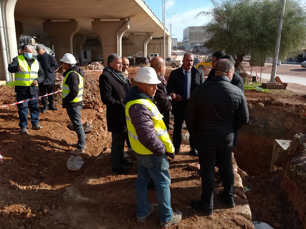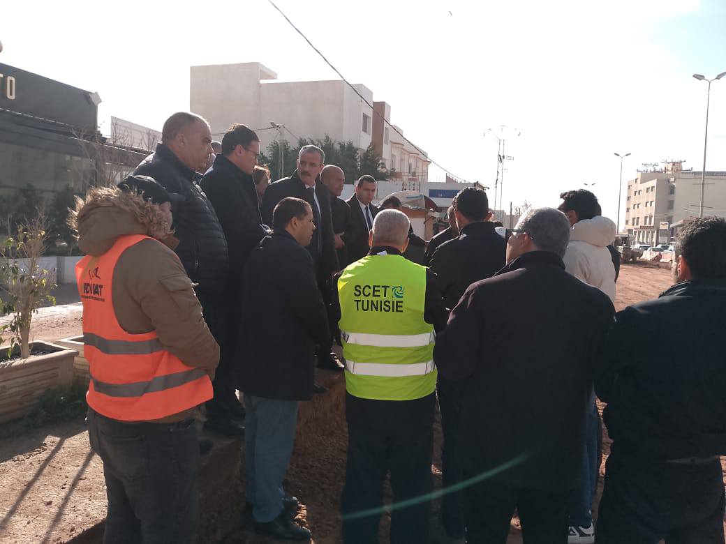 كمـا شمِلت الزيارة الميدانية التي قام بها السيد الوالـي الطريق الحزامية X 20 على مستوى منطقة خط جلاص لمعاينة تقدم الأشغال ، و بالنظر لأهمية المشروع و مساهمته في تخفيف الكثافة المرورية و تسهيل حركة المرور بالمنطقة ، شـدّد السيد الوالـي على المُقاولة المُكلفة بالمشروع بمضاعفة الجهود و بالتسريع في تمديد الأنابيب المُخصصة لقنوات جلب الماء الصالح للشرب و لإستكمال بقية الأشغال المُتعلقة بإنجاز ممر للمترجلين و الجسر على مستوى تقاطع الطريق الحزامية و نهج الجم حتى يكون المشروع جاهزا وفقا للآجال المُحددة ، مؤكدا على تحميل المسؤولية عن كل تقصير .